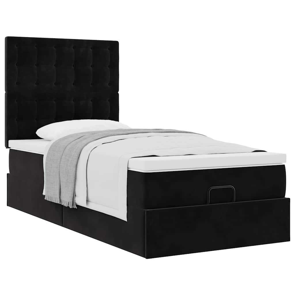 Cadru de pat otoman cu saltele, catifea neagră 100x200cm GartenMobel Dekor