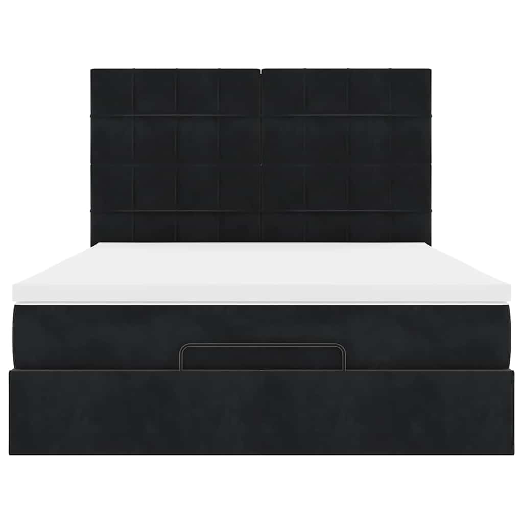 Cadru de pat otoman cu saltele, catifea neagră 140x190cm GartenMobel Dekor