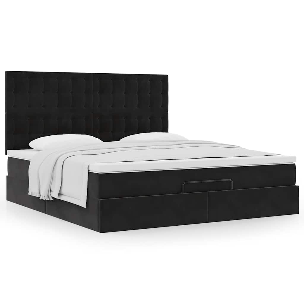 Cadru de pat otoman cu saltele, catifea neagră 160x200cm GartenMobel Dekor