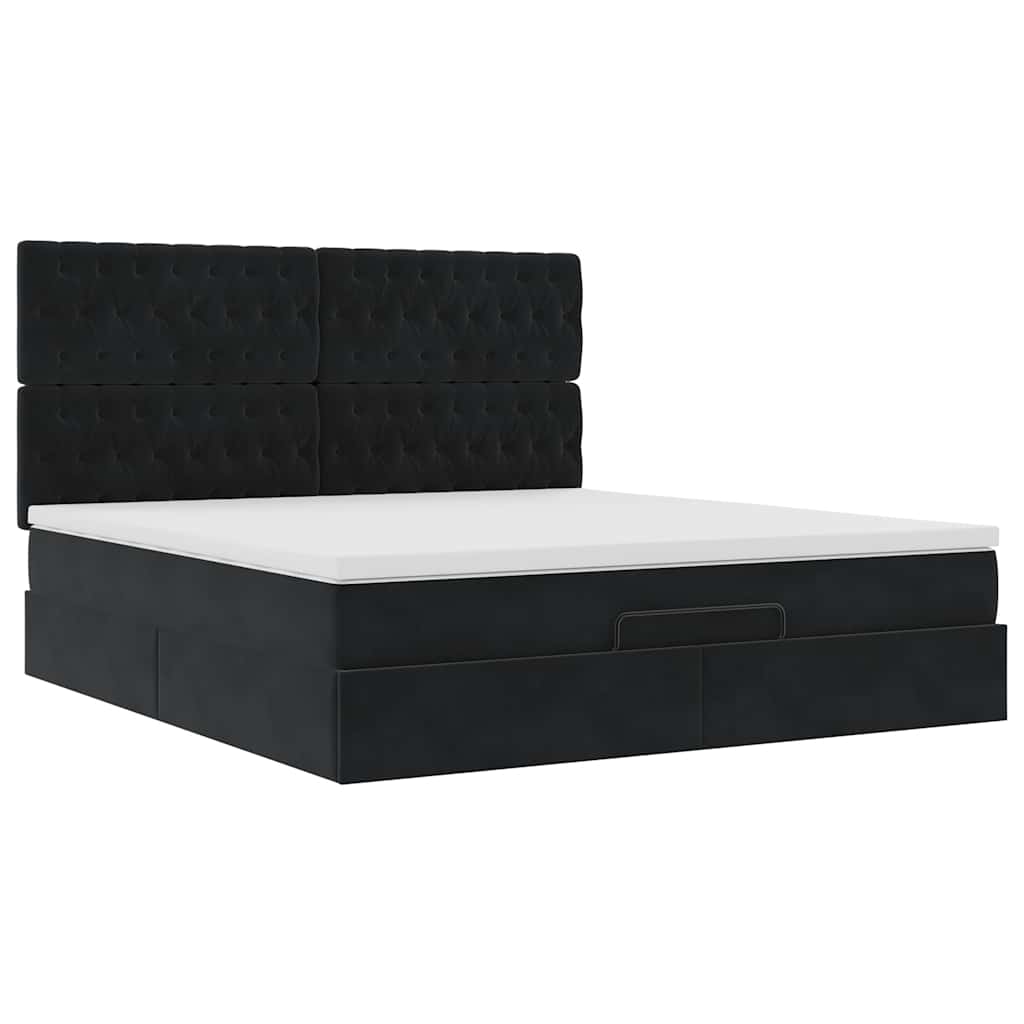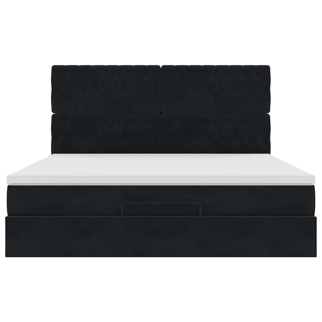 Cadru de pat otoman cu saltele, catifea neagră 160x200cm GartenMobel Dekor