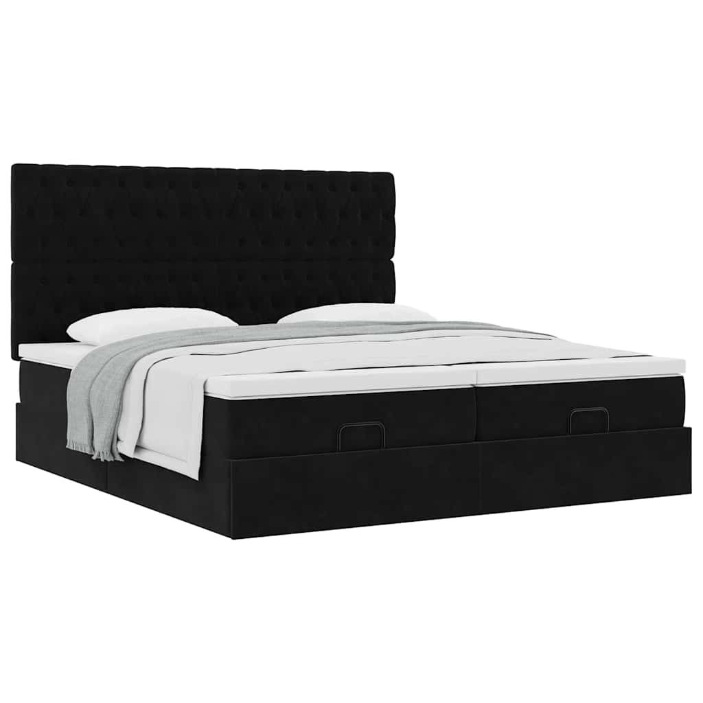 Cadru de pat otoman cu saltele, catifea neagră 180x200cm GartenMobel Dekor