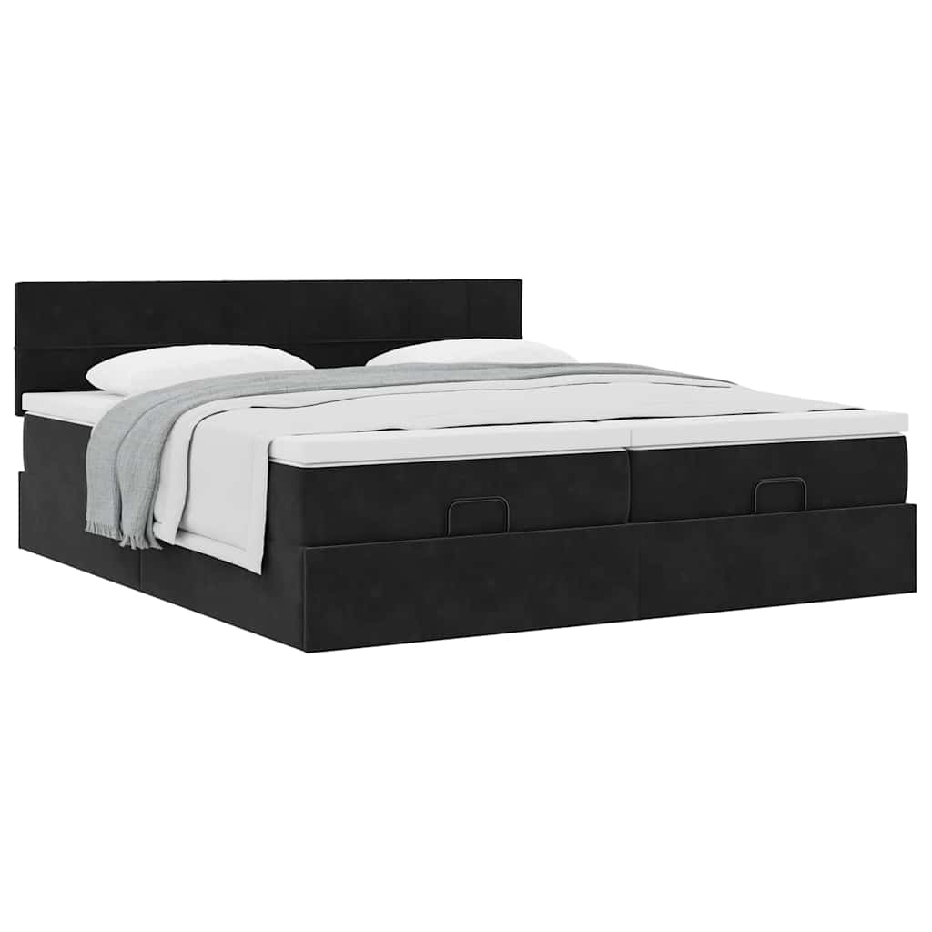 Cadru de pat otoman cu saltele, catifea neagră 180x200cm GartenMobel Dekor