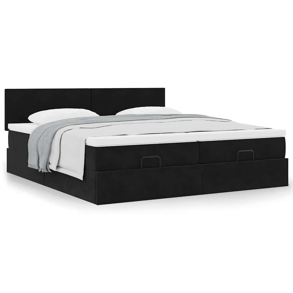 Cadru de pat otoman cu saltele, catifea neagră 180x200cm GartenMobel Dekor