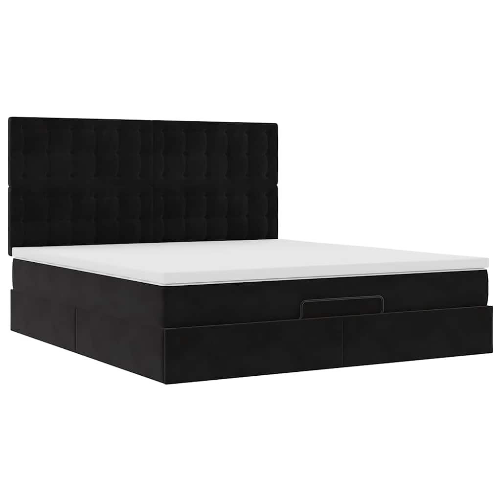 Cadru de pat otoman cu saltele, catifea neagră 180x200cm GartenMobel Dekor