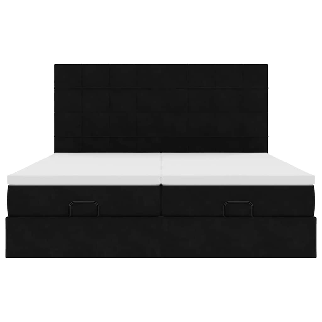 Cadru de pat otoman cu saltele, catifea neagră 200x200cm GartenMobel Dekor
