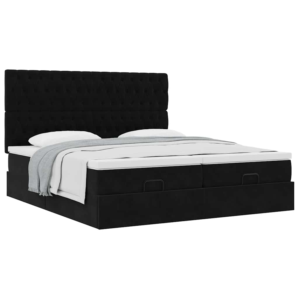 Cadru de pat otoman cu saltele, catifea neagră 200x200cm GartenMobel Dekor