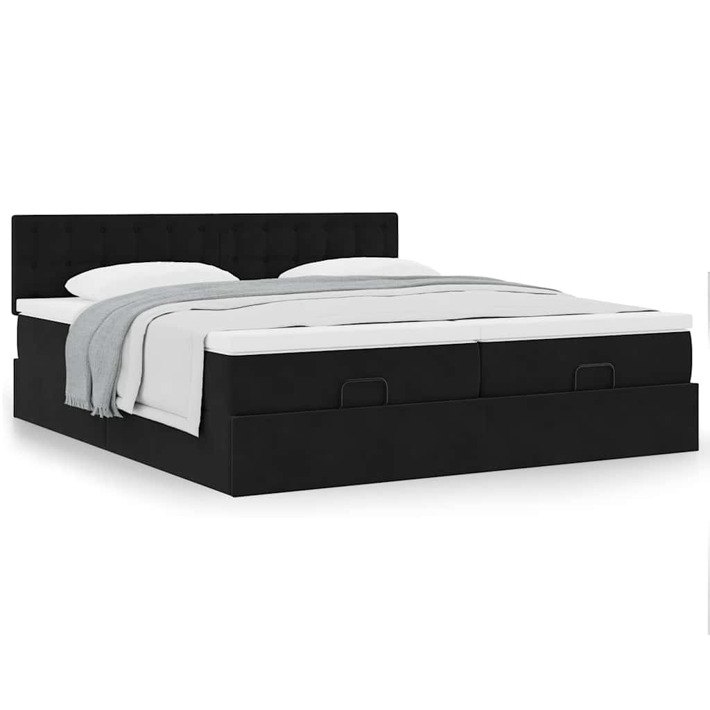 Cadru de pat otoman cu saltele, catifea neagră 200x200cm GartenMobel Dekor