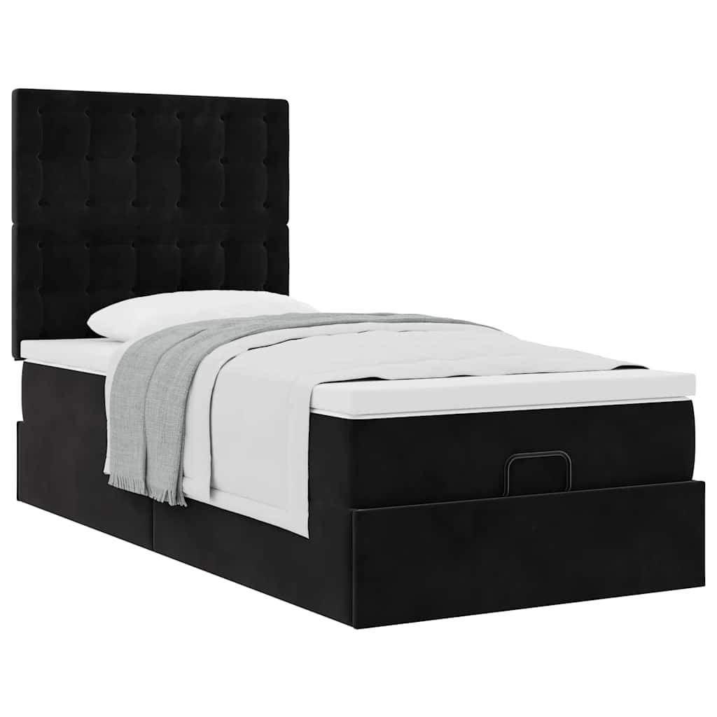 Cadru de pat otoman cu saltele, catifea neagră 90x190cm GartenMobel Dekor