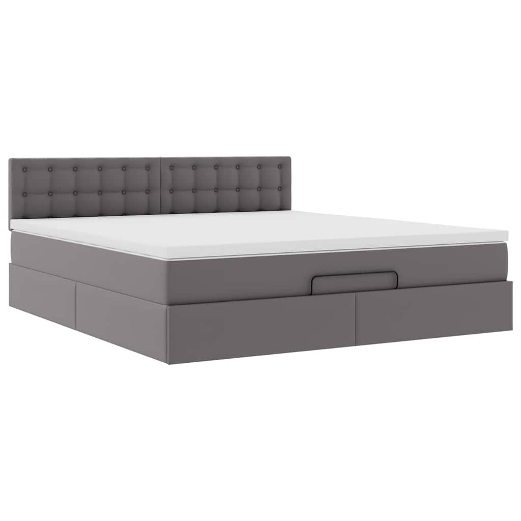 Cadru de pat otoman cu saltele Gri 180x200cm piele artificială GartenMobel Dekor