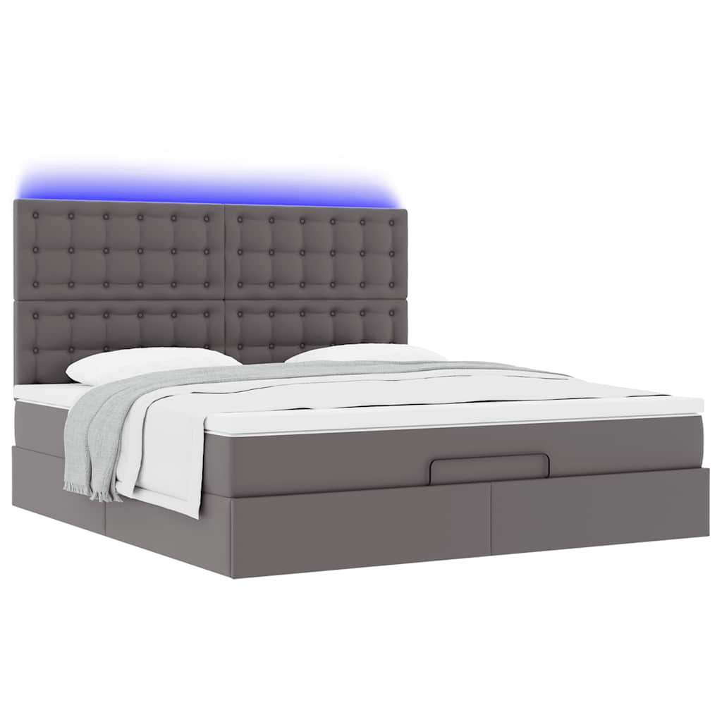 Cadru de pat otoman cu saltele Gri 180x200cm piele artificială GartenMobel Dekor