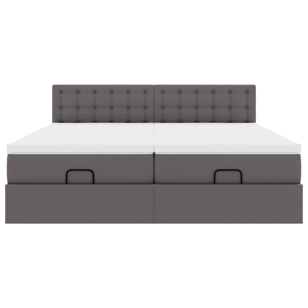 Cadru de pat otoman cu saltele Gri 200x200cm piele artificială GartenMobel Dekor
