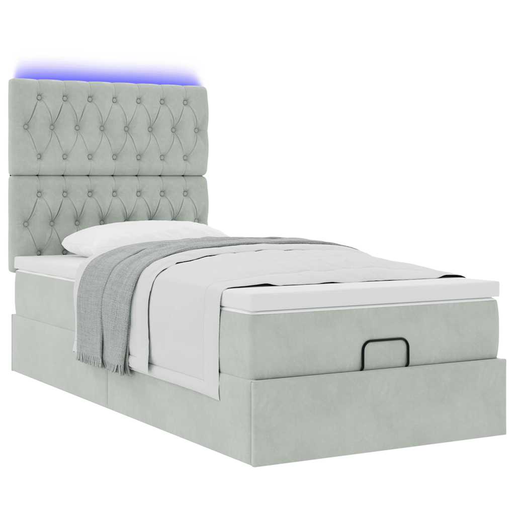 Cadru de pat otoman cu saltele Gri deschis 100x200cm catifea GartenMobel Dekor