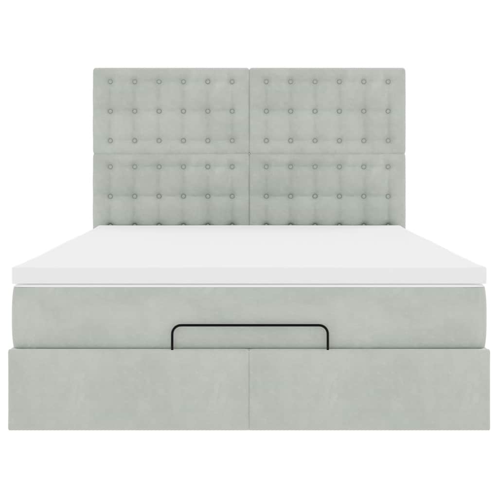 Cadru de pat otoman cu saltele Gri deschis 140x200cm catifea GartenMobel Dekor