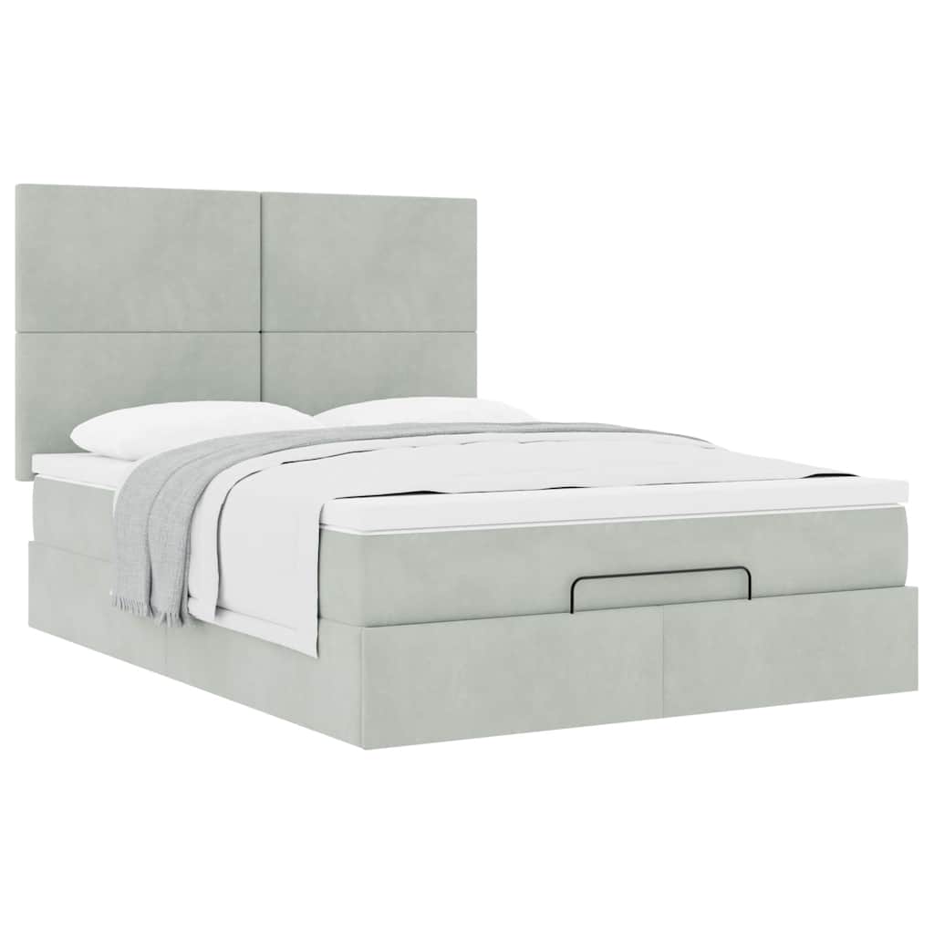 Cadru de pat otoman cu saltele Gri deschis 140x200cm catifea GartenMobel Dekor