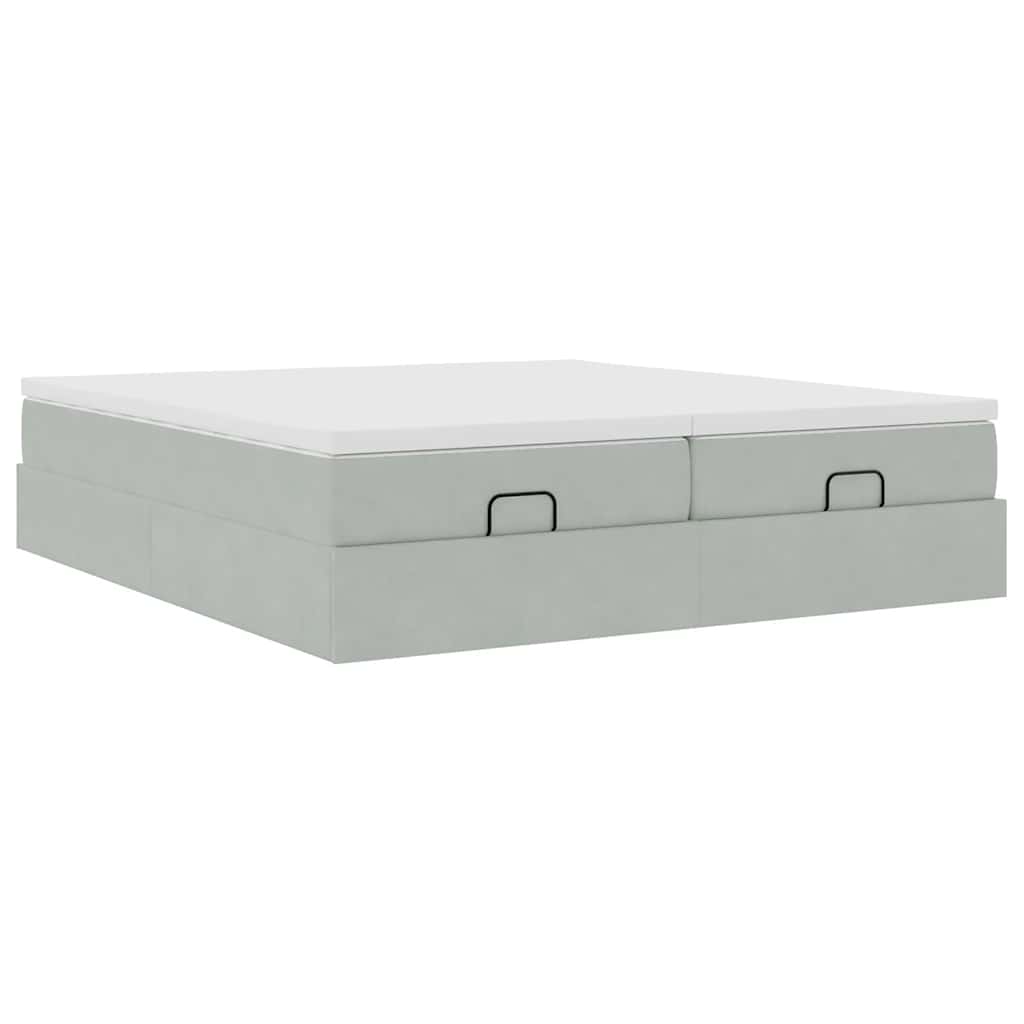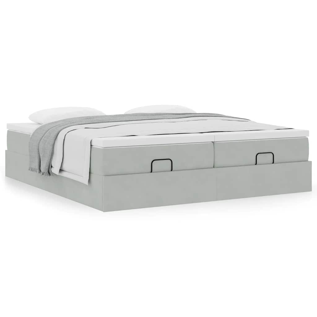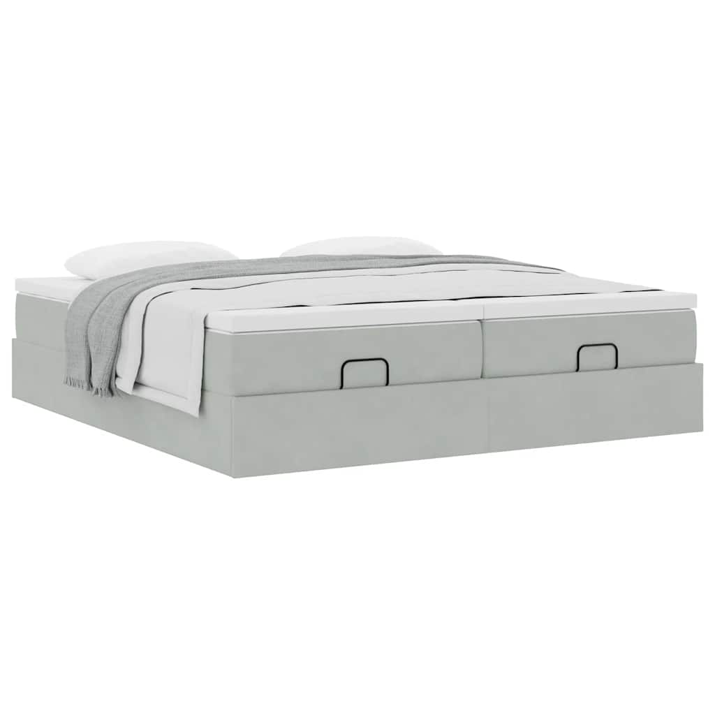 Cadru de pat otoman cu saltele Gri deschis 160x200cm catifea GartenMobel Dekor