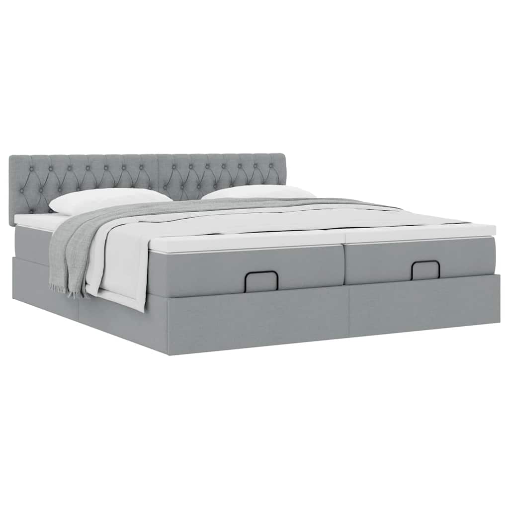 Cadru de pat otoman cu saltele Gri deschis 160x200cm Material GartenMobel Dekor