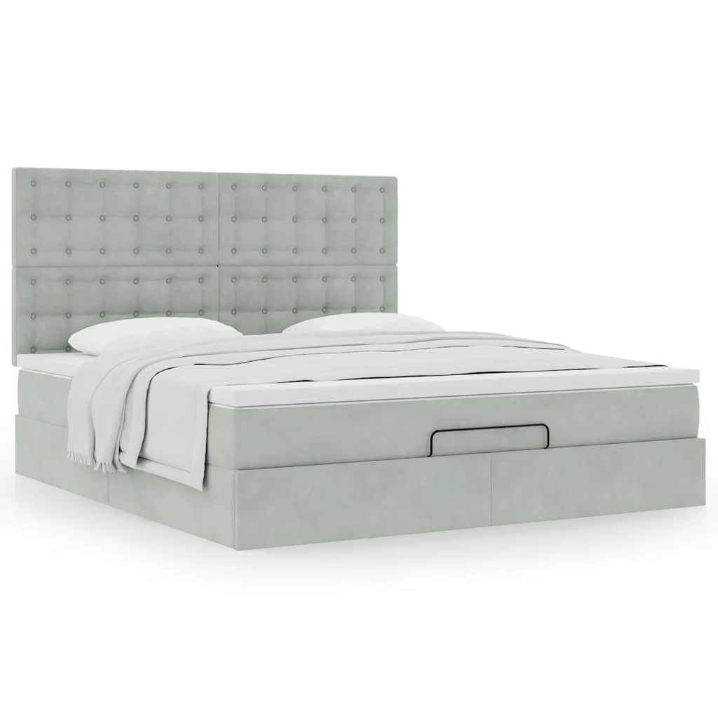 Cadru de pat otoman cu saltele Gri deschis 180x200cm catifea GartenMobel Dekor