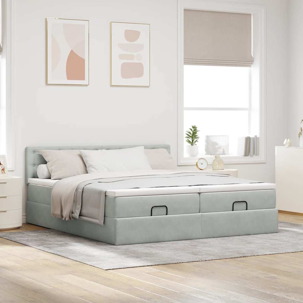 Cadru de pat otoman cu saltele Gri deschis 180x200cm catifea GartenMobel Dekor