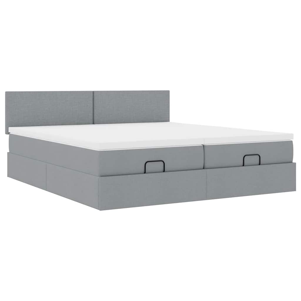 Cadru de pat otoman cu saltele Gri deschis 180x200cm Material GartenMobel Dekor