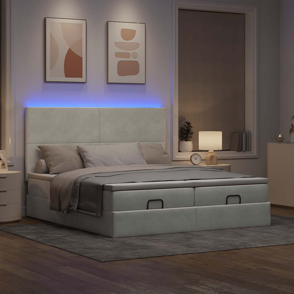 Cadru de pat otoman cu saltele Gri deschis 200x200cm catifea GartenMobel Dekor
