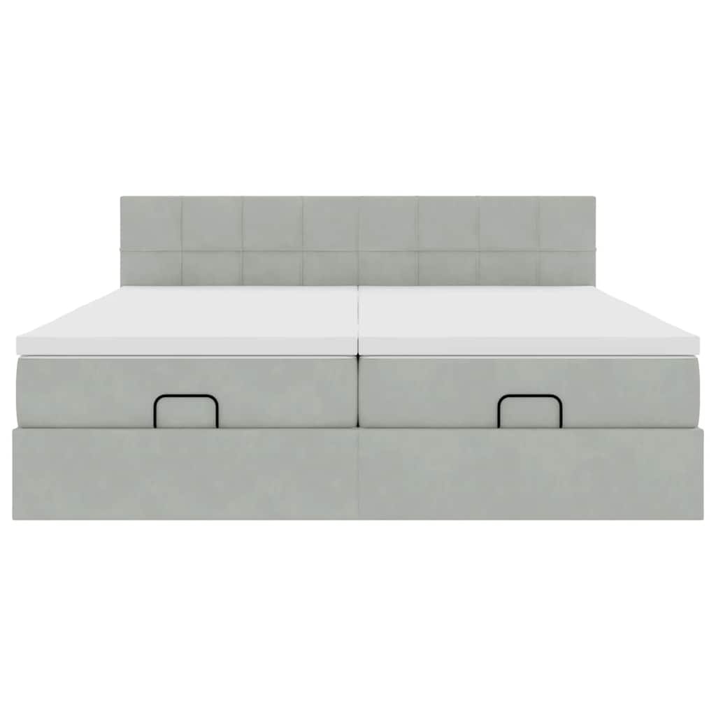 Cadru de pat otoman cu saltele Gri deschis 200x200cm catifea GartenMobel Dekor