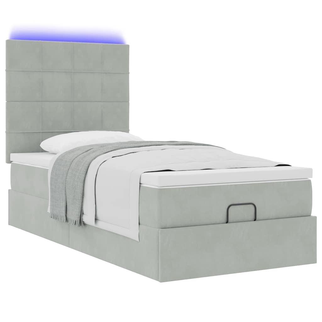 Cadru de pat otoman cu saltele Gri deschis 90x200cm catifea GartenMobel Dekor