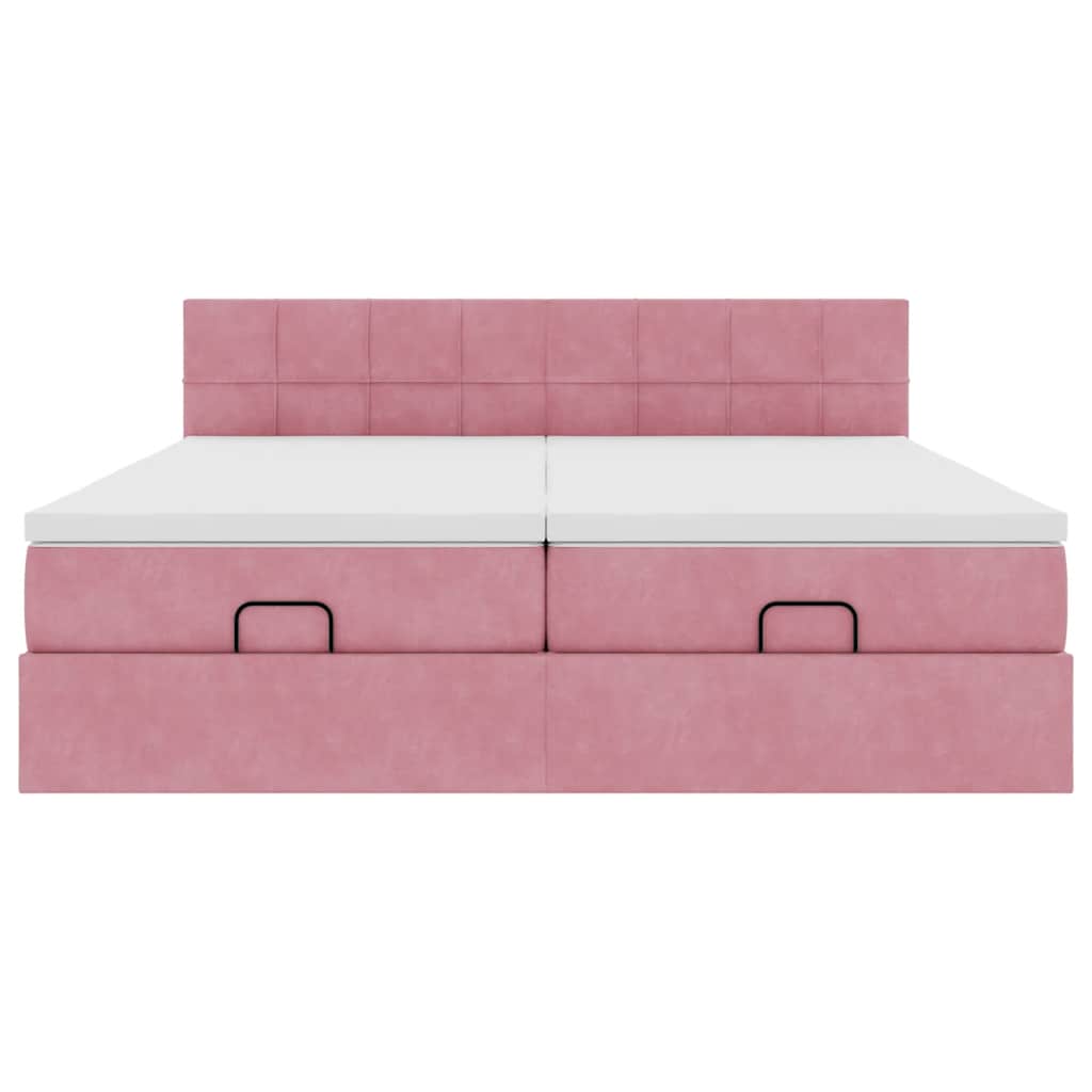 Cadru de pat otoman cu saltele Roz 160x200cm catifea GartenMobel Dekor