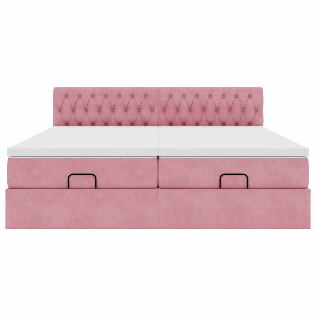 Cadru de pat otoman cu saltele Roz 180x200cm catifea GartenMobel Dekor