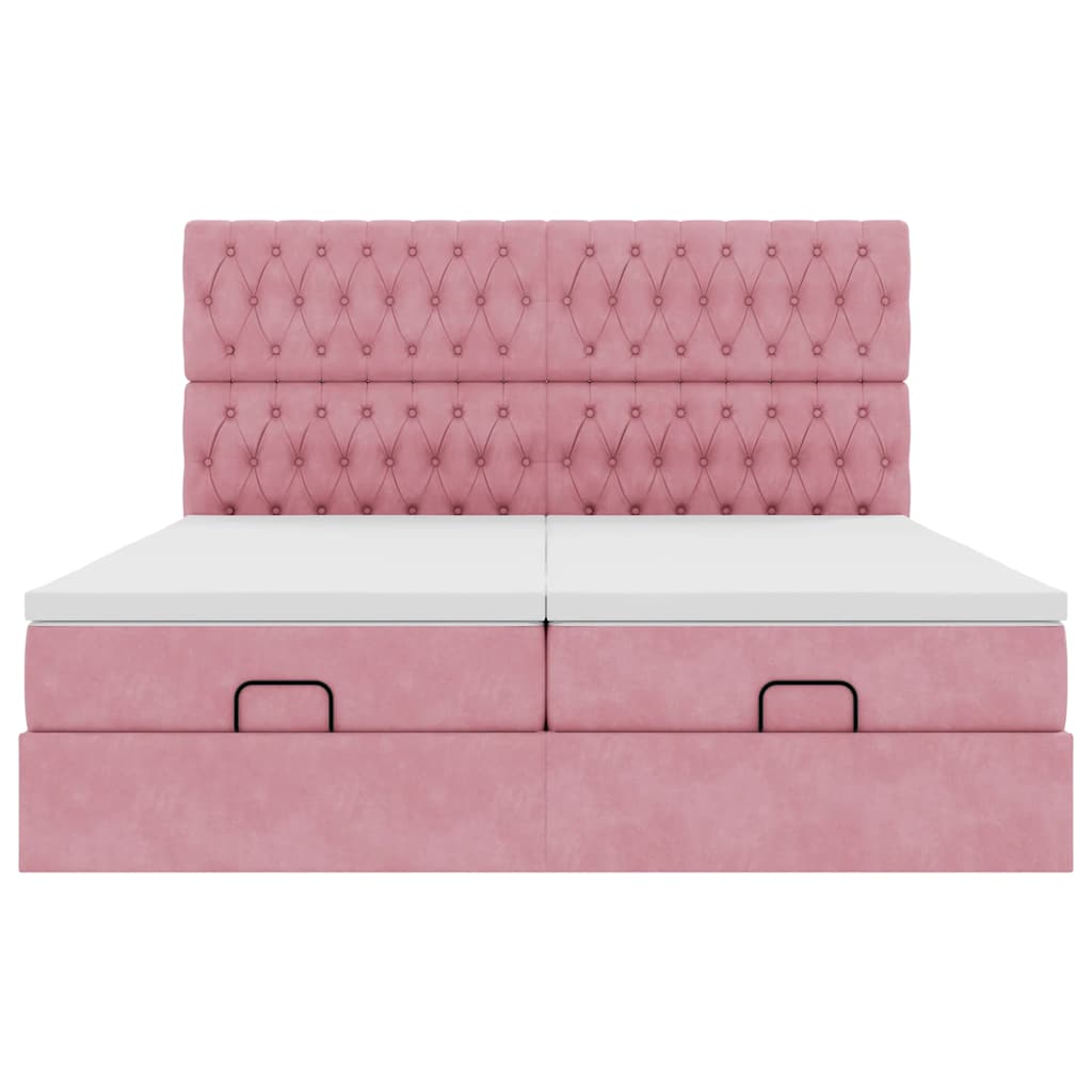 Cadru de pat otoman cu saltele Roz 180x200cm catifea GartenMobel Dekor