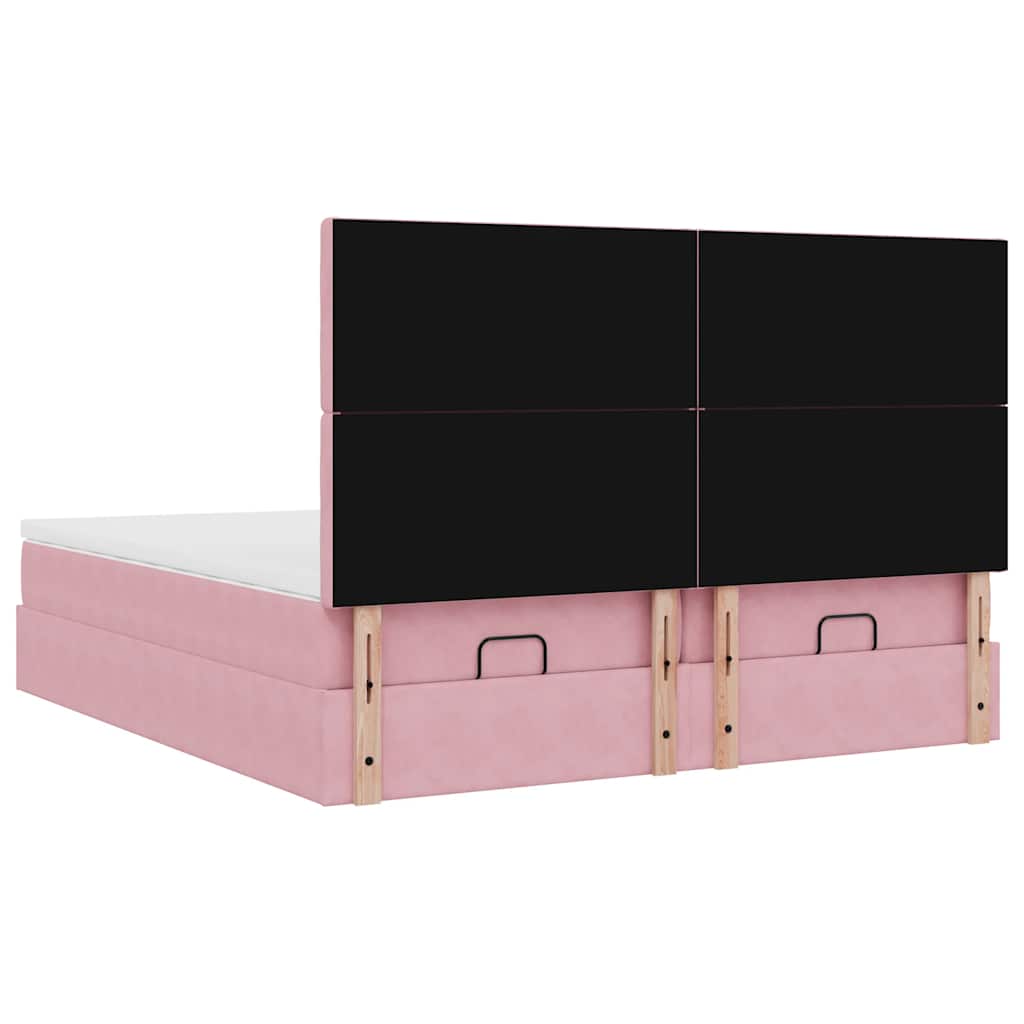 Cadru de pat otoman cu saltele Roz 180x200cm catifea GartenMobel Dekor