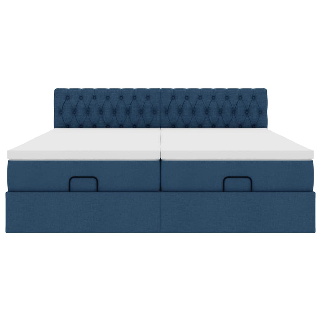 Cadru de pat otoman cu saltele, țesătură albastră 180x200cm GartenMobel Dekor