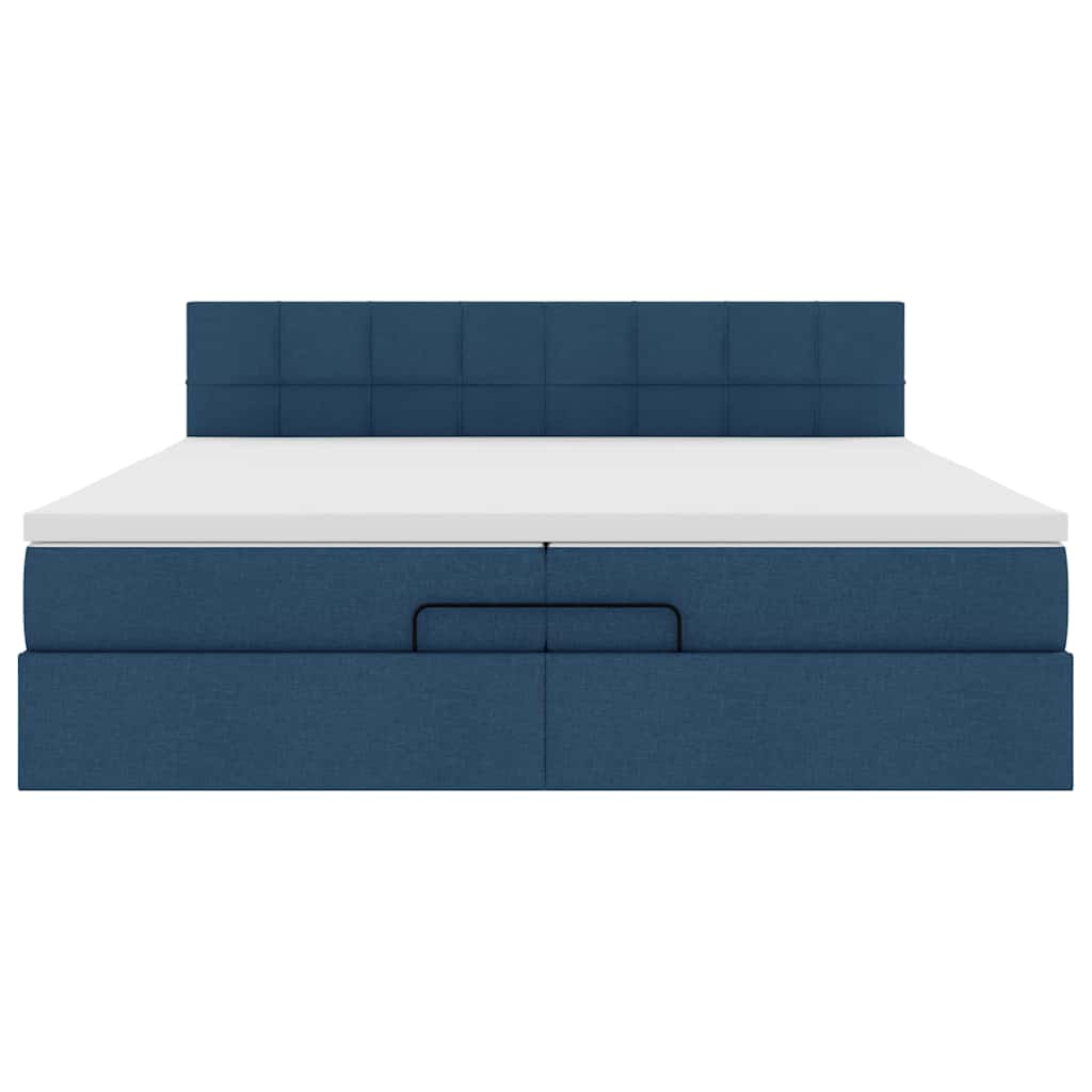 Cadru de pat otoman cu saltele, țesătură albastră 200x200cm GartenMobel Dekor