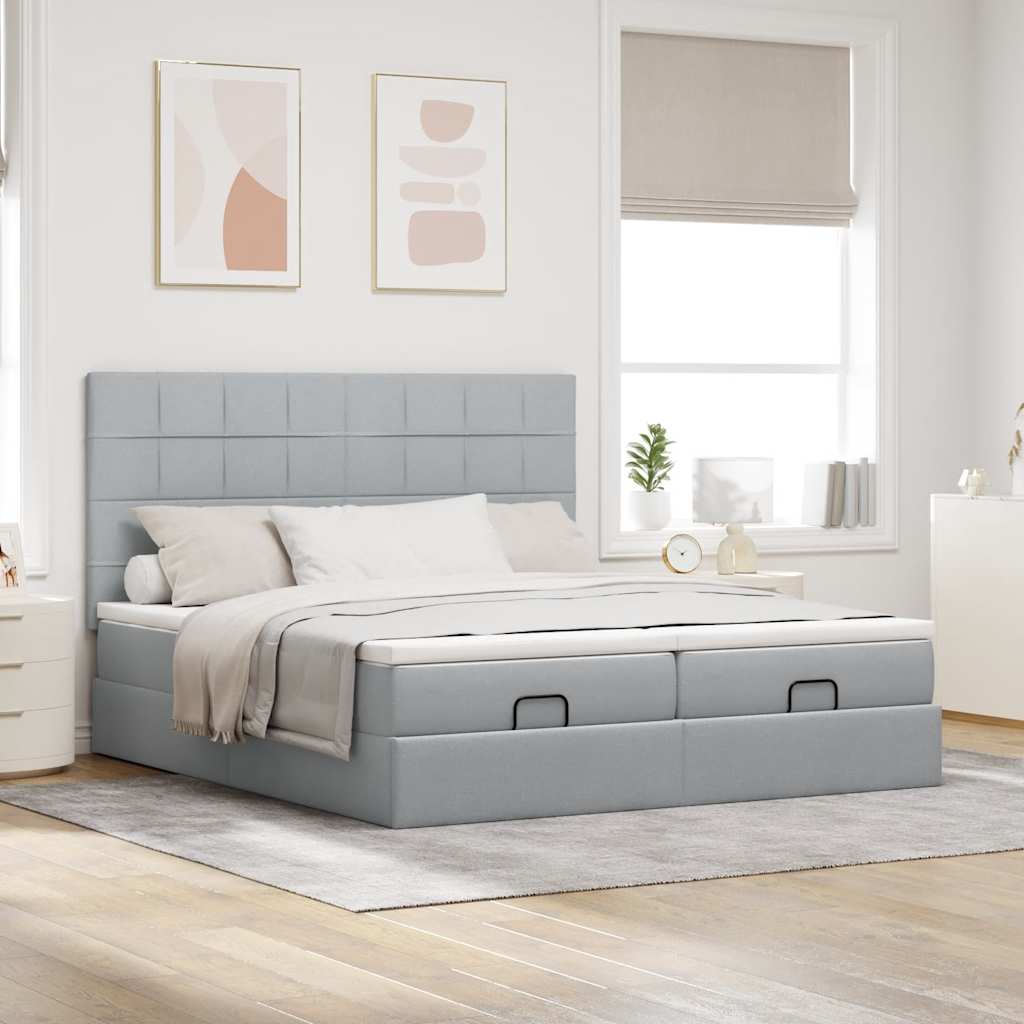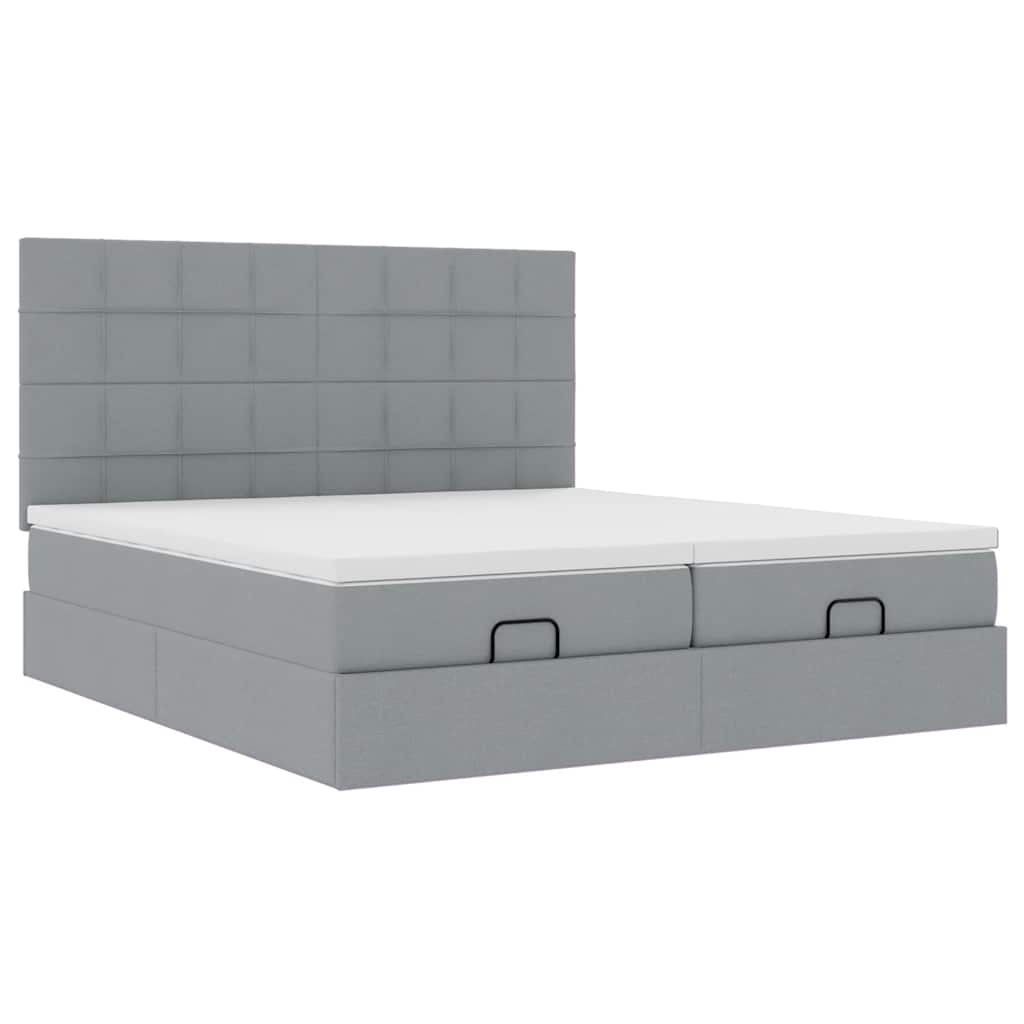 Cadru de pat otoman cu saltele țesătură gri deschis 200x200cm GartenMobel Dekor