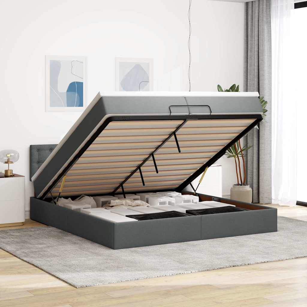 Cadru de pat otoman cu saltele țesătură gri închis 200x200cm GartenMobel Dekor