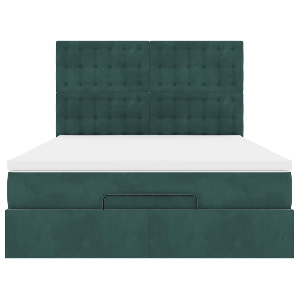 Cadru de pat otoman cu saltele verde închis 140x200cm catifea GartenMobel Dekor
