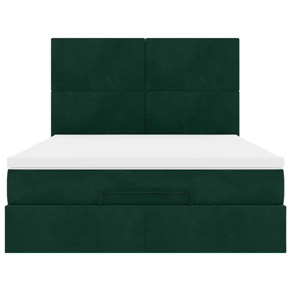 Cadru de pat otoman cu saltele verde închis 140x200cm catifea GartenMobel Dekor