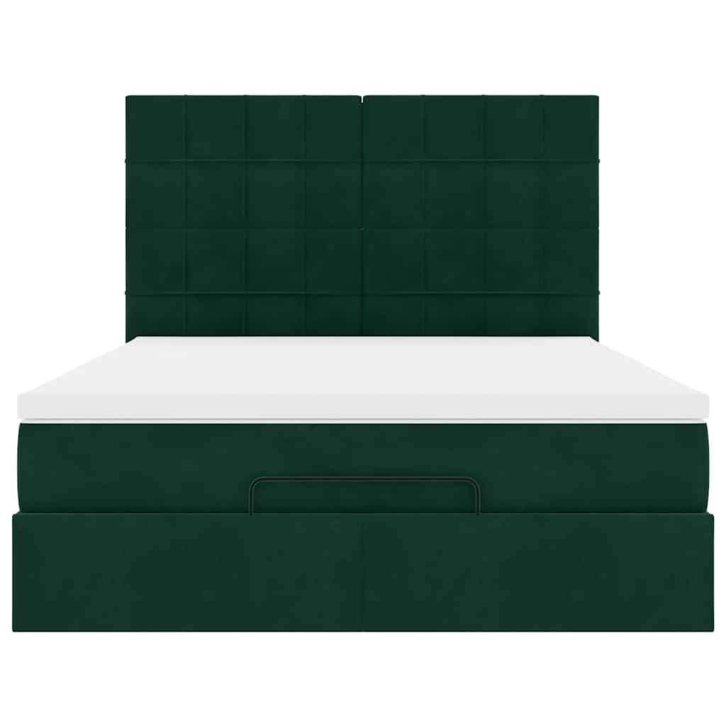 Cadru de pat otoman cu saltele verde închis 140x200cm catifea GartenMobel Dekor