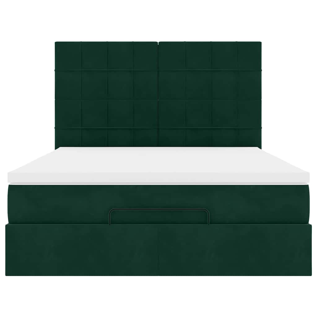 Cadru de pat otoman cu saltele verde închis 140x200cm catifea GartenMobel Dekor