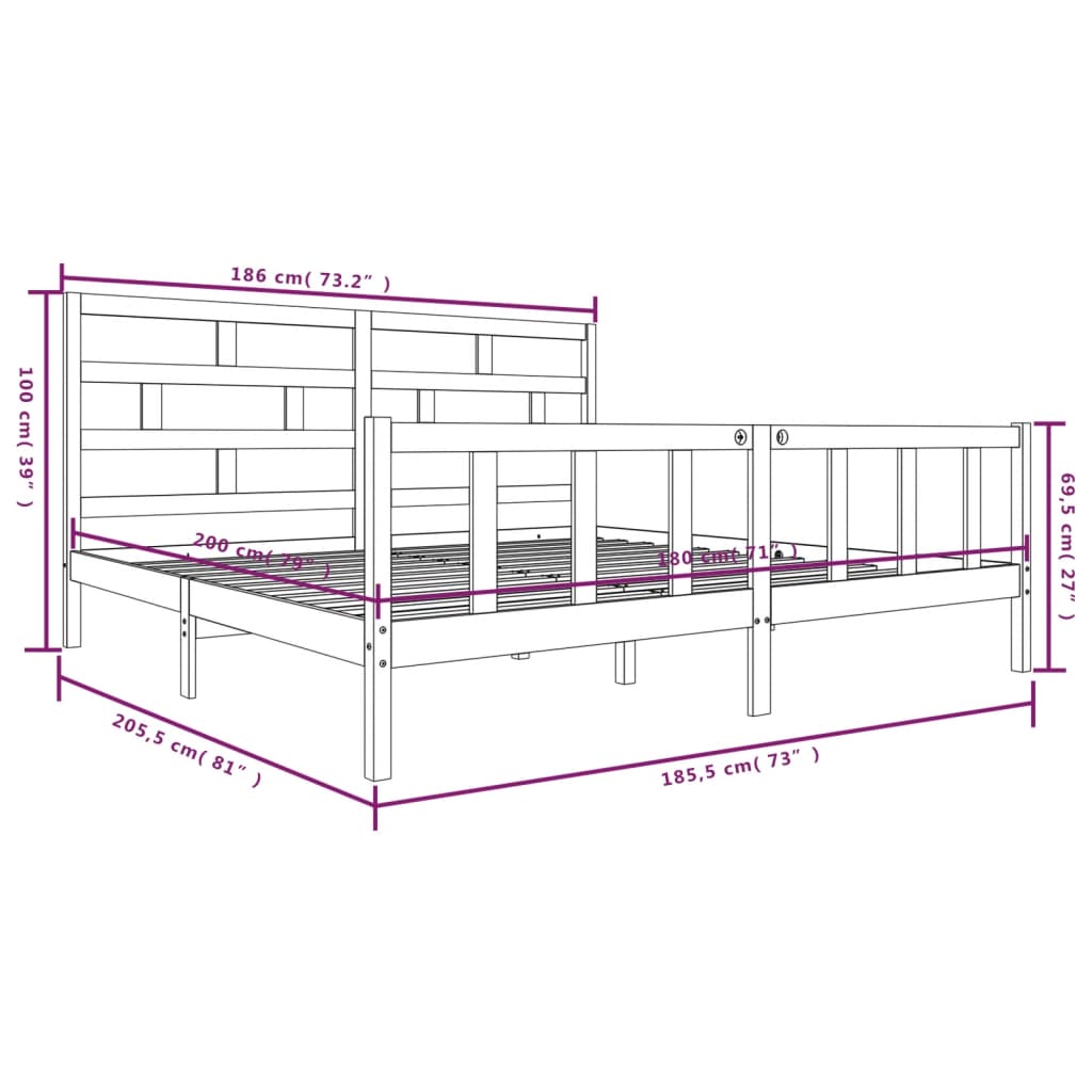 Cadru de pat Super King, 180x200 cm, lemn masiv de pin GartenMobel Dekor