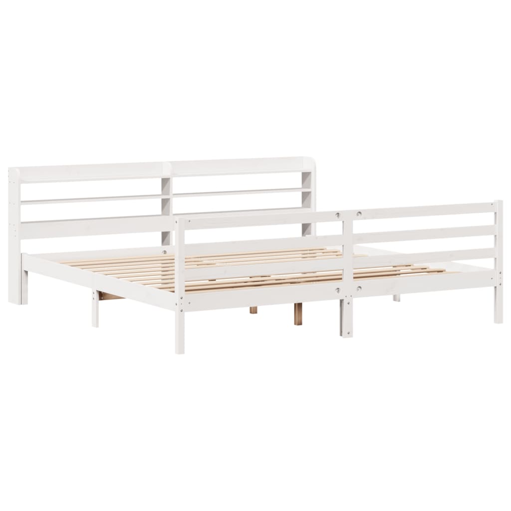 Cadru pat cu tăblie 200x200 cm, alb, lemn masiv de pin GartenMobel Dekor