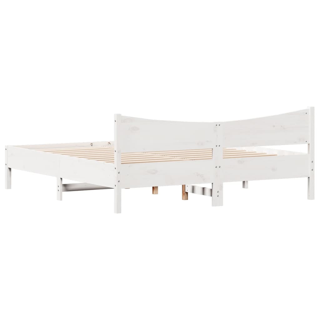 Cadru pat cu tăblie 200x200 cm, alb, lemn masiv de pin GartenMobel Dekor