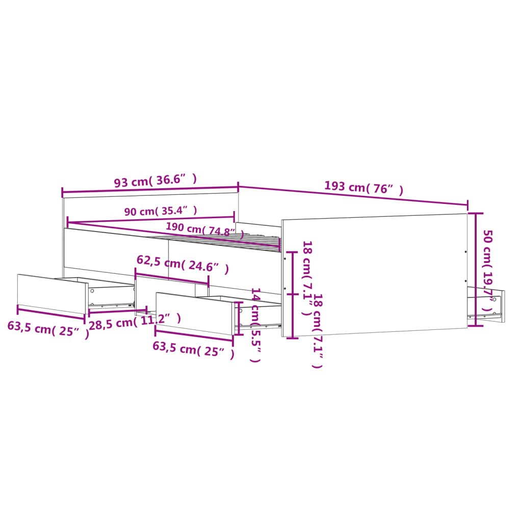 Cadru pat cu tăblie la cap/picioare, stejar sonoma, 90x190 cm GartenMobel Dekor