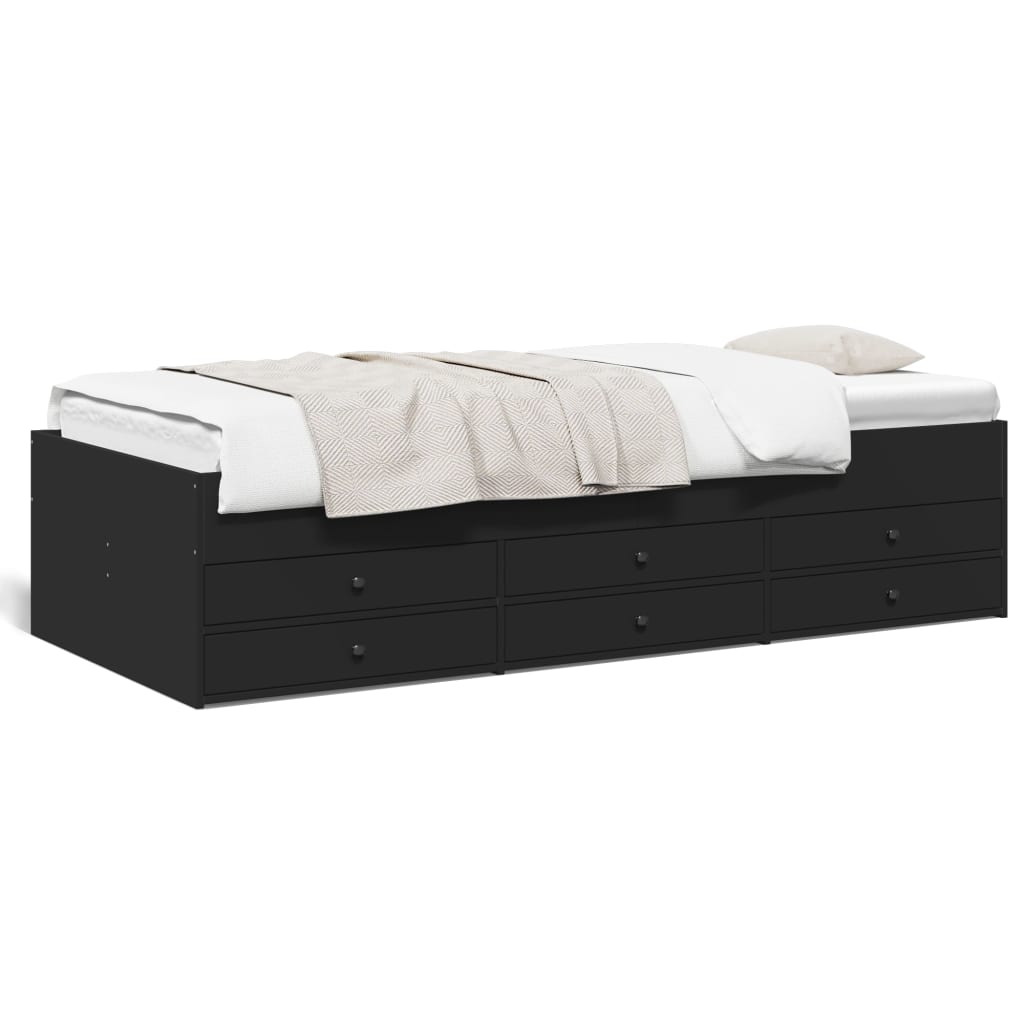 Cadru pat de zi cu sertare, negru, 90x190 cm, lemn prelucrat GartenMobel Dekor
