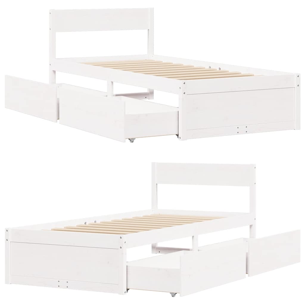 Cadru pat fără saltea, alb, 100x200 cm, lemn masiv pin GartenMobel Dekor