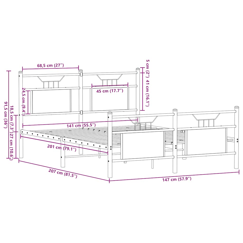 Cadru pat fără saltea stejar fumuriu 140x200 cm lemn prelucrat GartenMobel Dekor