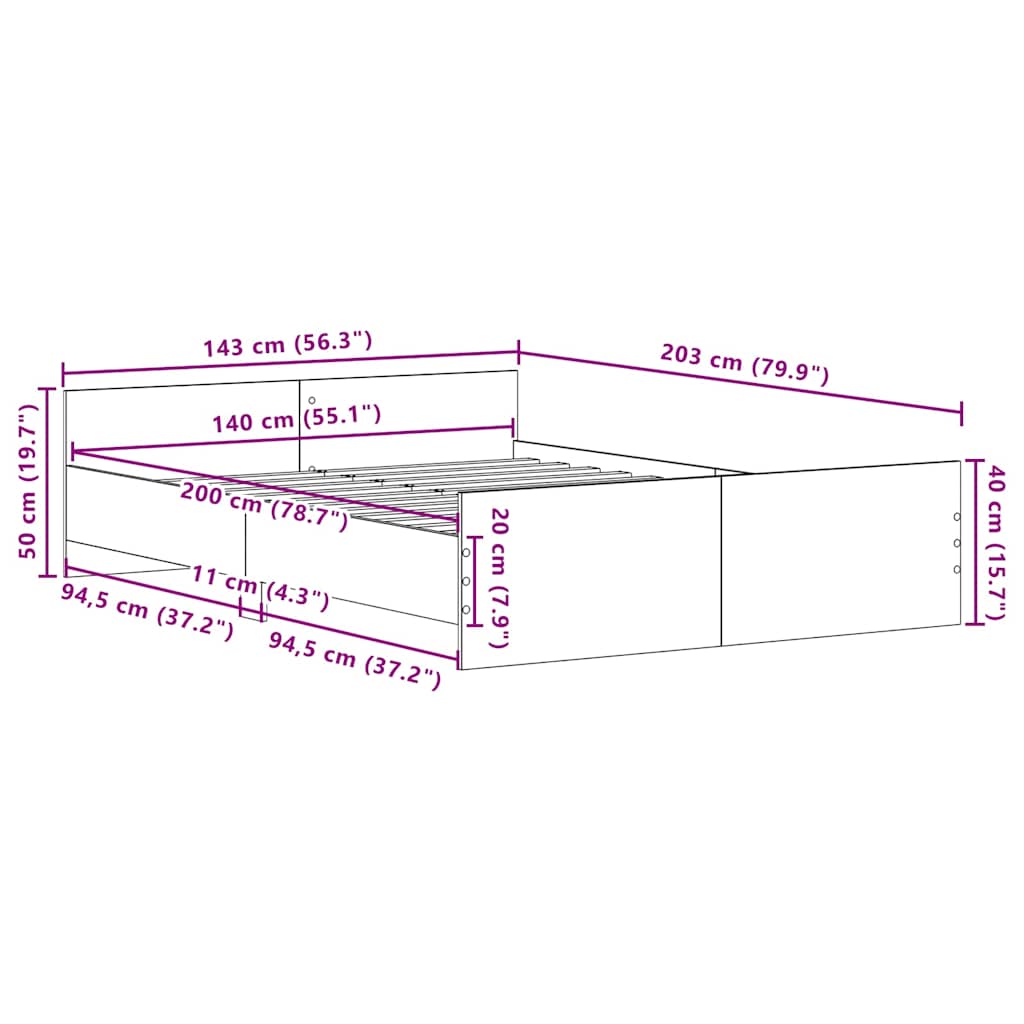 Cadru pat fără saltea, stejar negru, 140x200 cm, lemn prelucrat GartenMobel Dekor