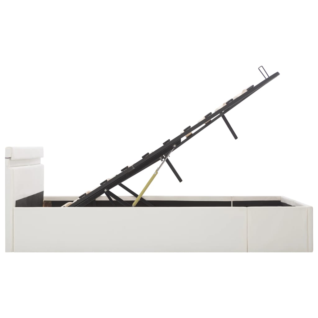 Cadru pat hidraulic cu ladă LED alb 160x200 cm, piele ecologică GartenMobel Dekor