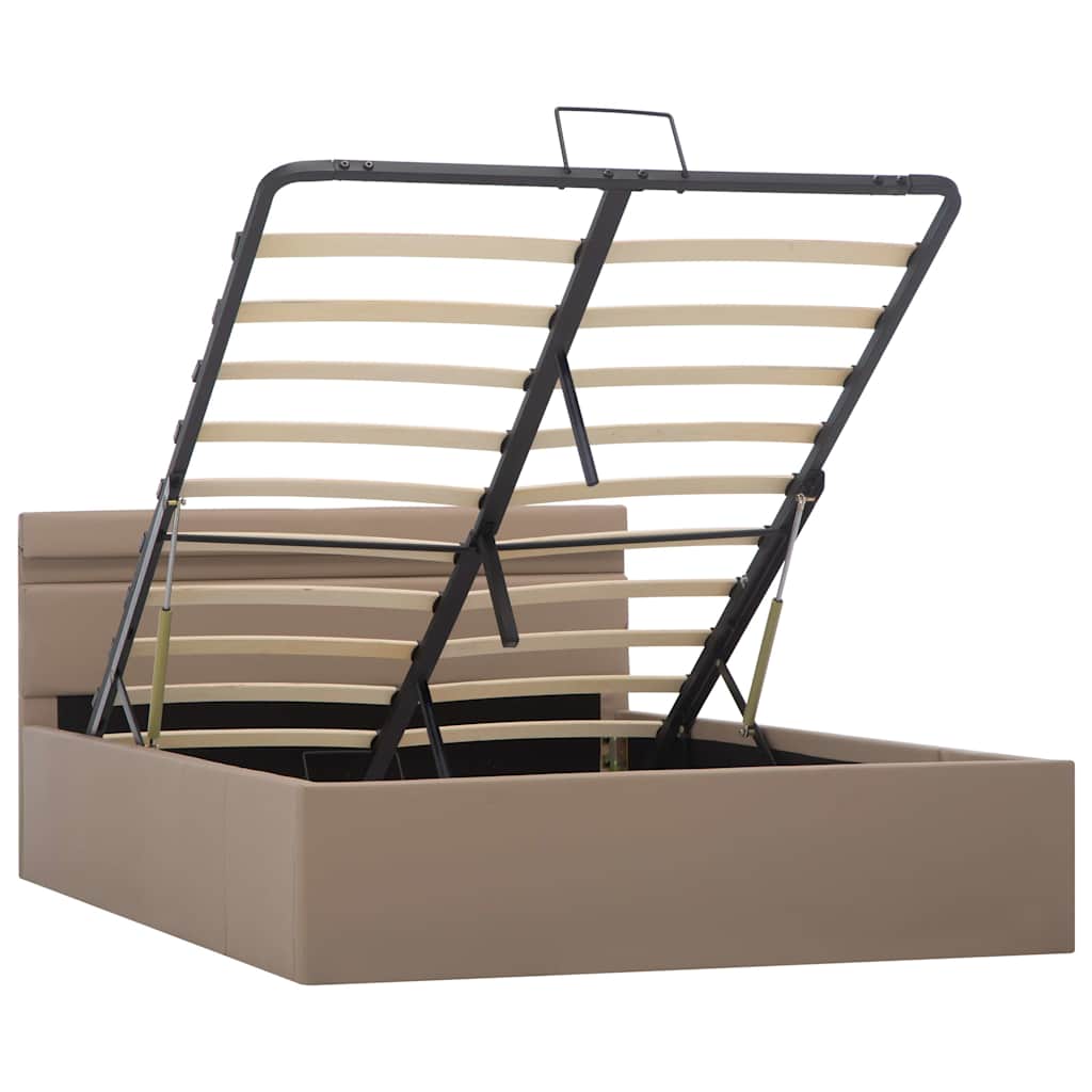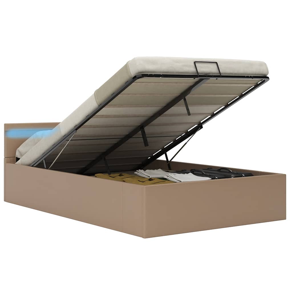 Cadru pat hidraulic cu LED cappuccino 120x200cm piele ecologică GartenMobel Dekor
