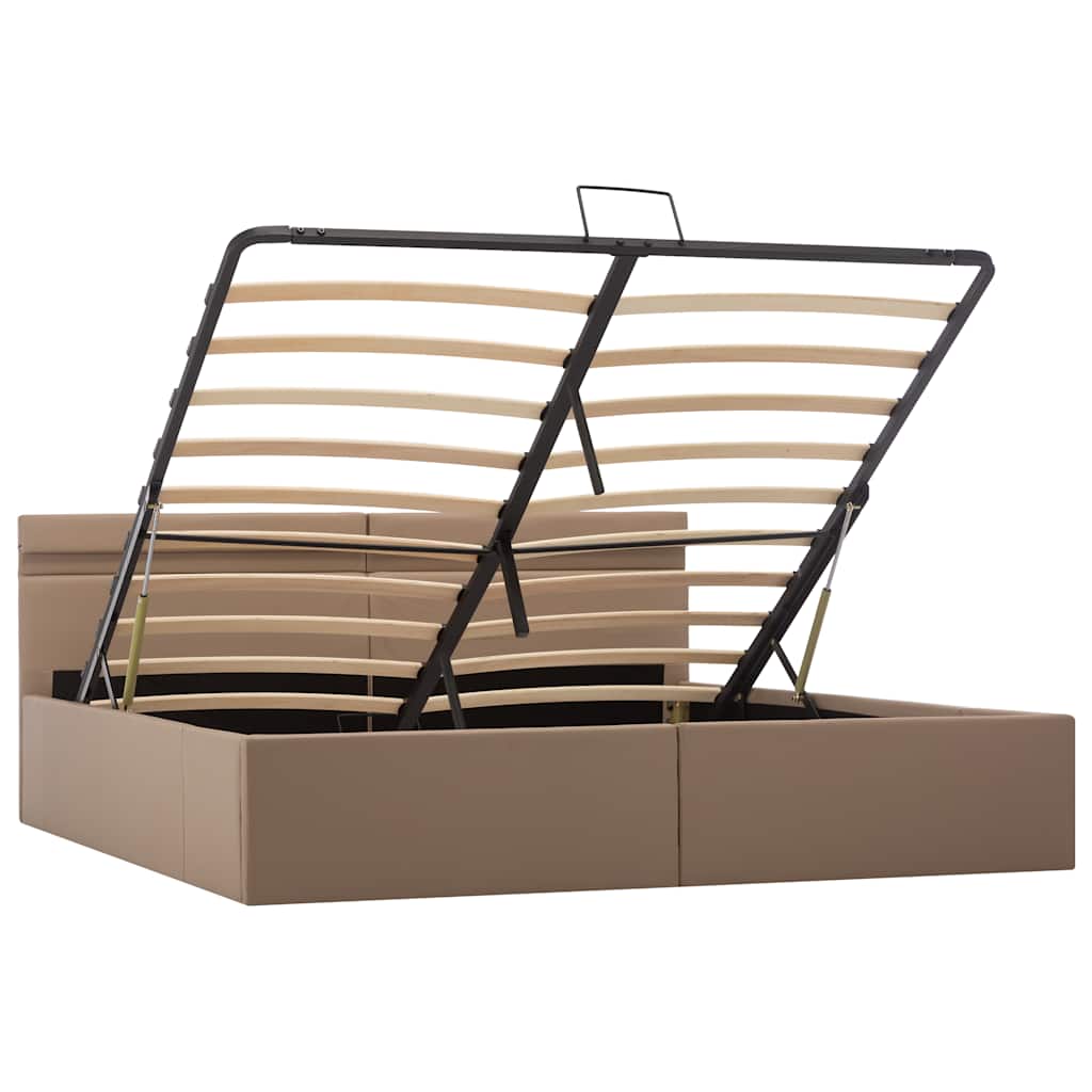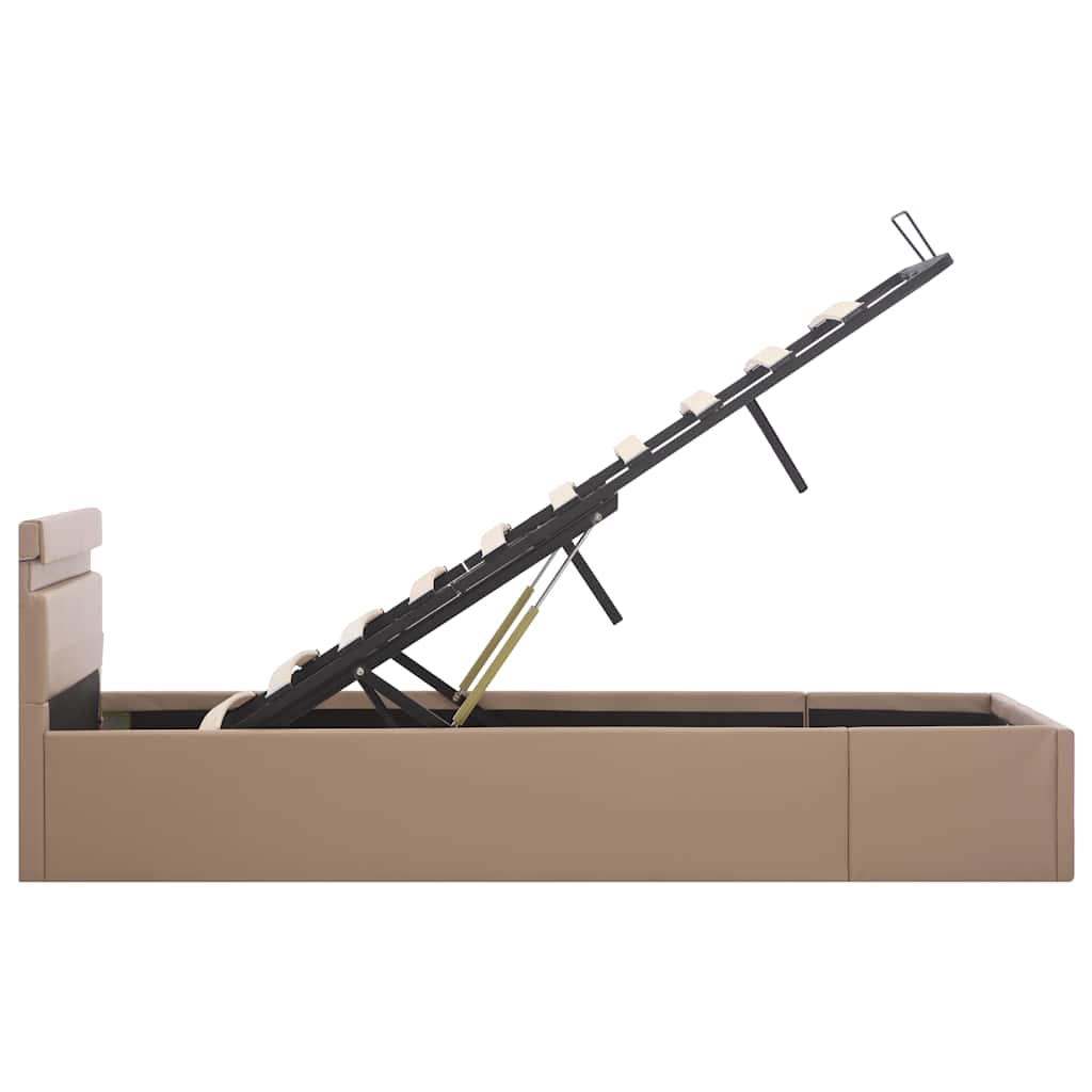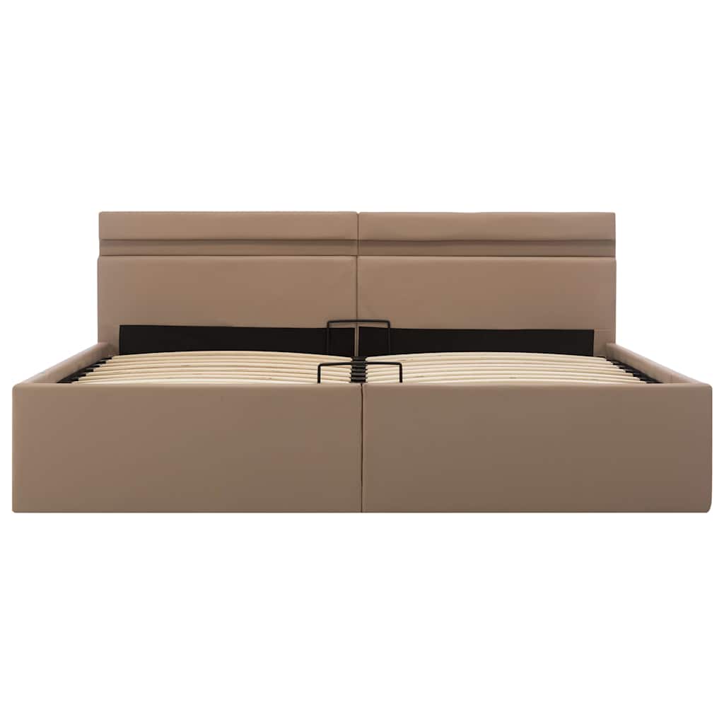 Cadru pat hidraulic cu LED cappuccino 180x200cm piele ecologică GartenMobel Dekor
