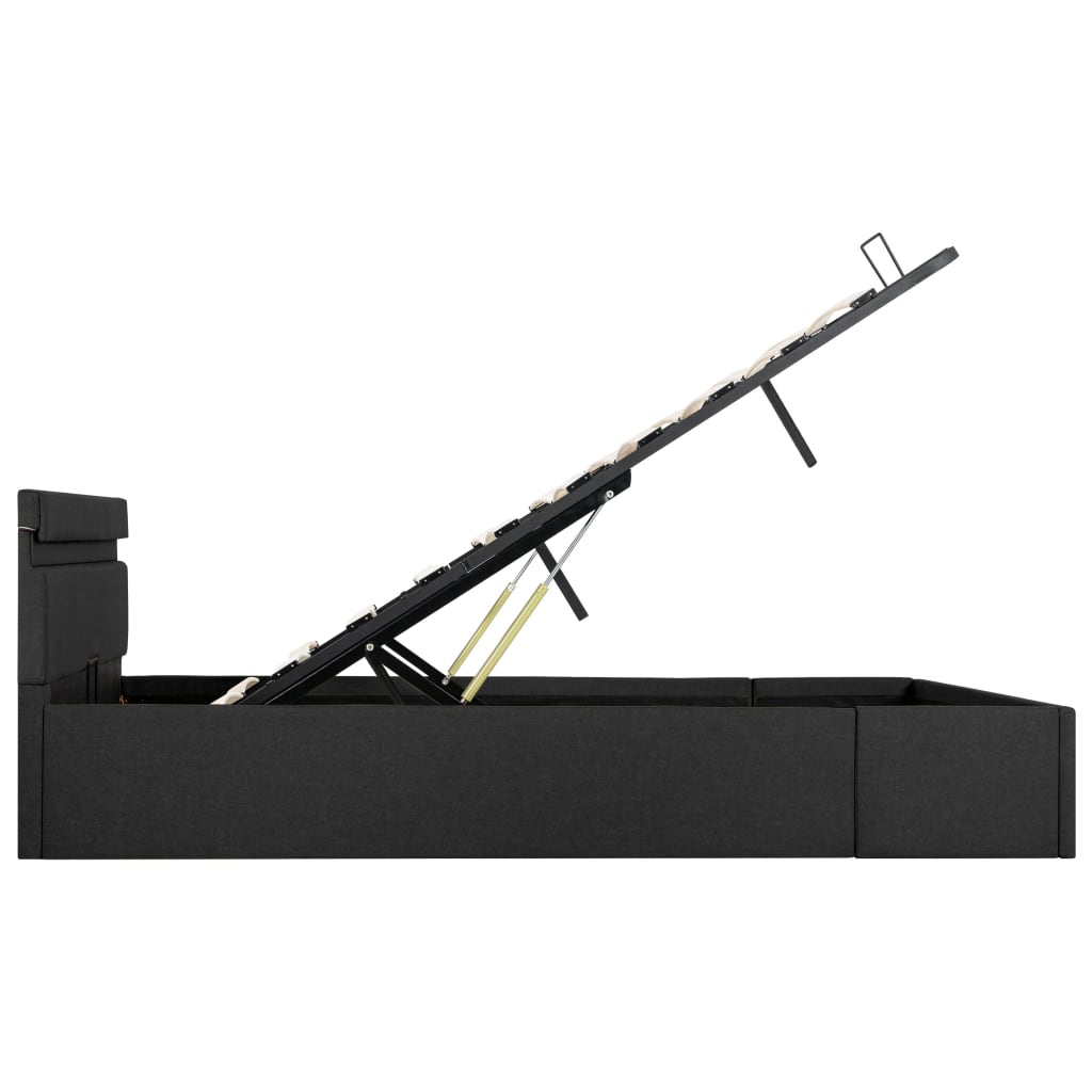 Cadru pat hidraulic cu LED, gri închis, 140x200 cm, textil GartenMobel Dekor